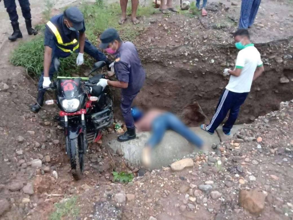 सडक बनाउन खनिएको खाल्डोमा खसेर मोटरसाइकल चालकको मृत्यु