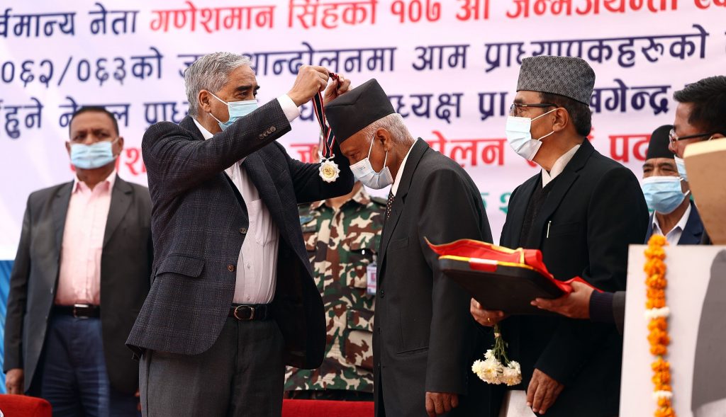 विसं १९९७ सालदेखि नै राणा शासनविरुद्ध आन्दोलन थाल्नुभएको बताउँदै उहाँले प्रजातन्त्रका लागि ठूलो सङ्घर्ष गरी लामो जेल र निर्वासन जीवन बिताउनुभएका नेता सिंहले प्रजातन्त्र प्राप्तिपछि पदको कुनै लोभ नगरेको उल्लेख गर्नुभयो । प्रधानमन्त्री देउवाले मुलुकमा प्रजातन्त्र मास्नलाई तत्कालीन राजाले आफूलाई थुनेको र जनता सडकमा ओर्लिएपछि गणतन्त्र आएको समेत स्मरण गर्नुभयो ।
