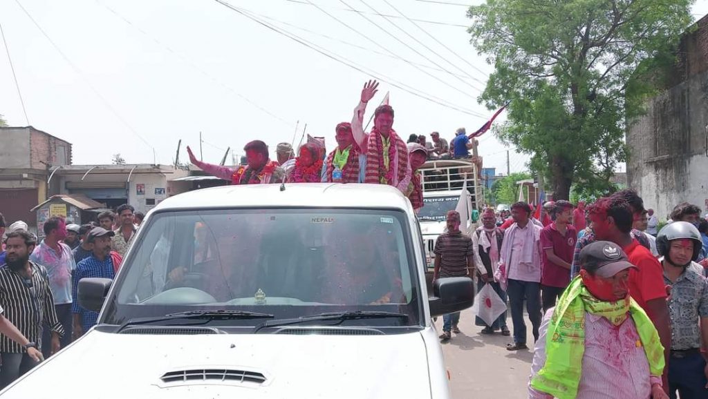 विजयनगरका नव निर्वाचित पालिका अध्यक्ष थापाको नेतृत्वमा नेकपा एमालेको विजय र्याली