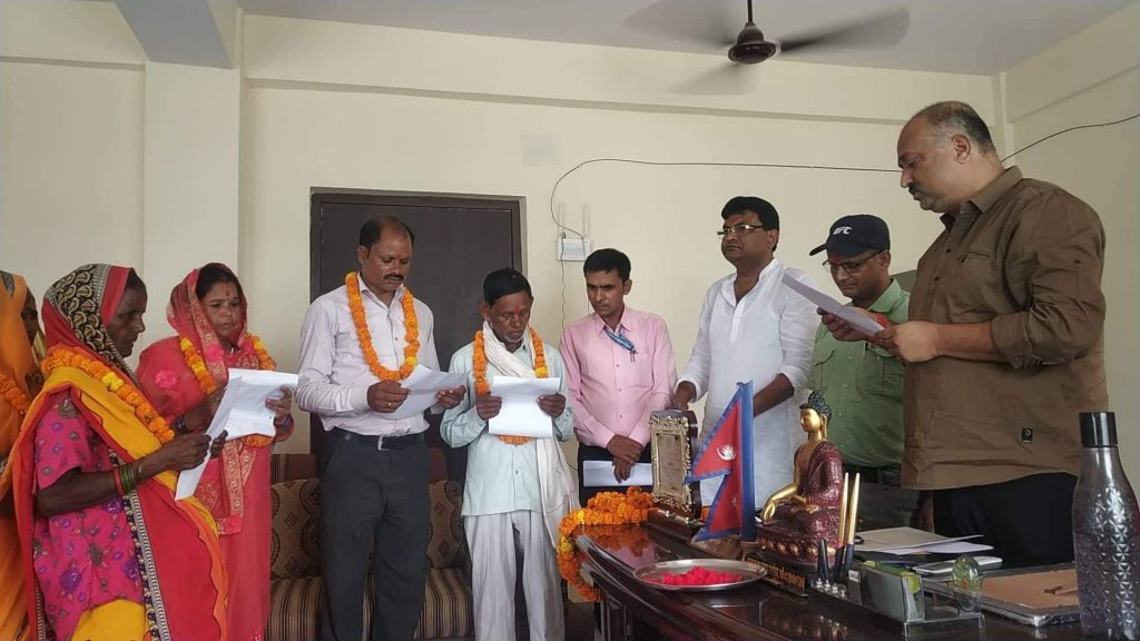 कृष्णनगर नगर कार्यपालिका सदस्यमा निर्वाचित ज्योति कोरी, गौरि शंकर हरिजन, विद्यावती कोहार, रामलाल बढ्ई, राम किशोर बरई, इन्द्रावती भर, शुशीला नाउ, सोमना पासीलाई, नगर प्रमुख शाहले पद तथा गोपनीयता को सपथ दिलाएका छन् l