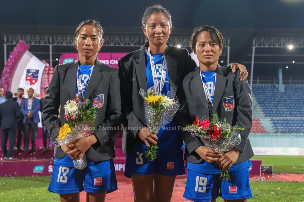 दशरथ रङ्गशालामा छैटौँ संस्करणको महिला साफ च्याम्पियनसिपको समापनसँगै गाेलरक्षक पुनम, मिडफिल्डरद्वय दीपा र इन्दिराले सन्यासको घोषणा गरे । अखिल नेपाल फुटबल सङ्घ (एन्फा) ले ब्लेजरसहित उनीहरुको बिदाइ गरेको छ ।