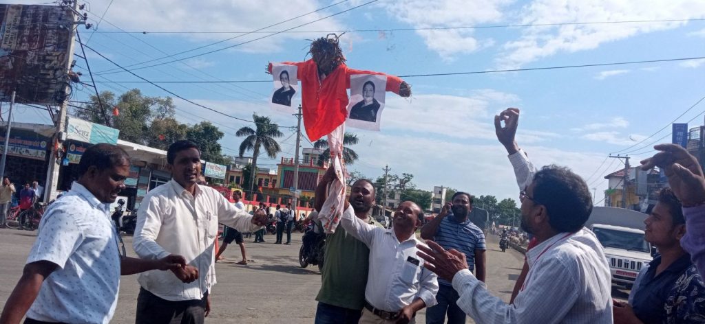 कपिलवस्तुमा नागरिकता विधेयक अस्वीकृत गरेको भन्दै राष्ट्रपतिको पुत्ला दहन