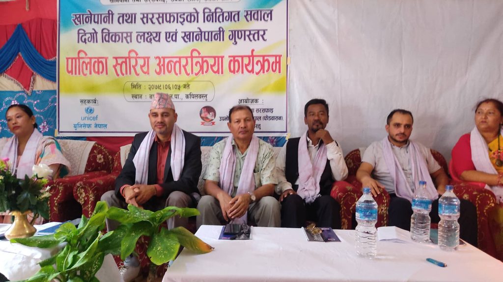 खानेपानी तथा सरसफाई उपभोक्ता महासंघ नेपाल फेडवासन कपिलवस्तुको आयोजना र युनिसेफ नेपालको सहकार्यमा वाणगगा पाटिप्यालेसमा भएको कार्यक्रममा भएको कार्यक्रममा वाणगंगा नगरपालिकाका शिक्षा शाखा प्रमुख खिमबाहादुर जिसि, स्वास्थ्य शाखा प्रमुख ठगराज पौडेल, लगायत विभिन्न जिल्लाका खानेपानी तथा सरसफाई महासंग, युनिसेफ, विभिन्न संगसंस्थाका प्रतिनिधि र प्रत्रकारहरुको उपस्थिति रहेको थियो ।