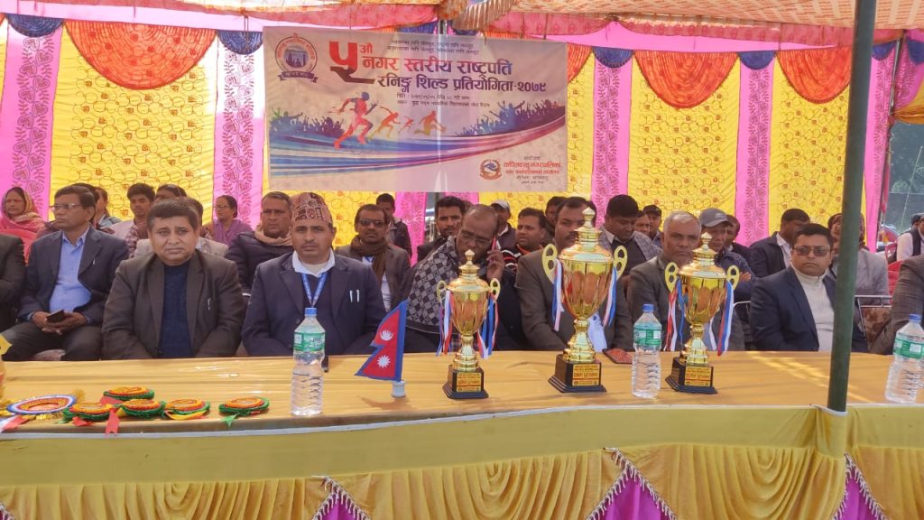 कपिलबस्तु, पुस ५ गते । “स्वास्थ्यका लागि खेलकुद, राष्ट्रको लागि खेलकुद, अनुशासनको लागि खेलकुद, पहिचानको लागि खेलकुद” भन्ने मुल नाराका साथ पाँचौ नगरस्तरिय राष्ट्रपति रनिङ शिल्ड प्रतियोगिता सुरु भएको छ । प्रतियोगिता कपिलबस्तु नगरपालिकाको आयोजनामा पुस ५ गते देखि ८ गते सम्म बुद्धपद्म माविको खेलमैदानमा सुरु भएको हो ।
