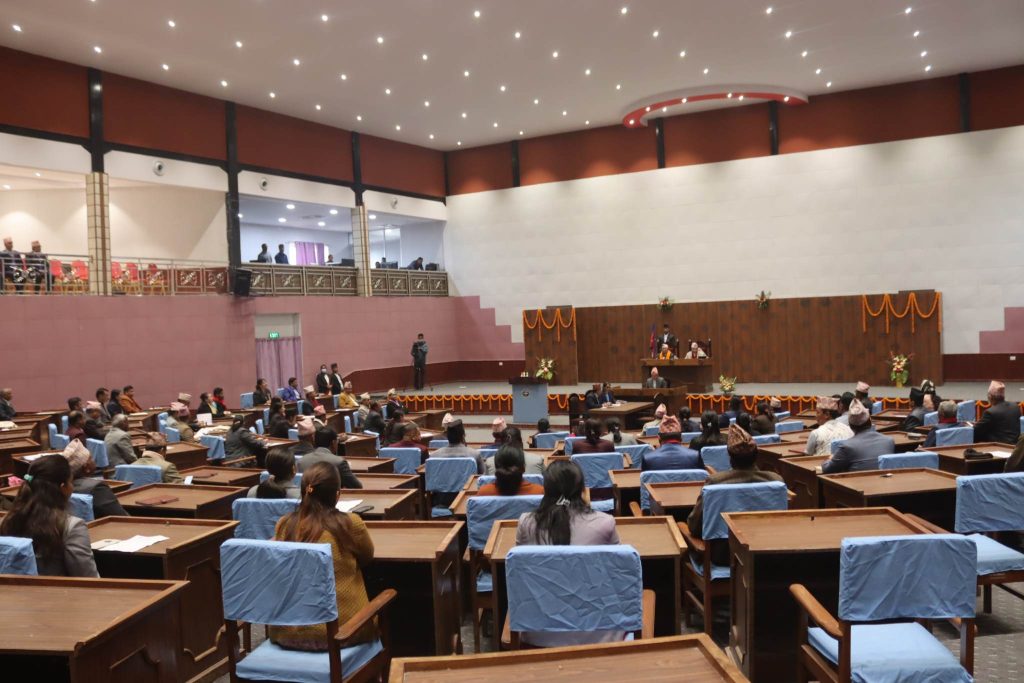 प्रदेश प्रमुख अमिक शेरचनले प्रदेश सभा बैठकलाई सम्बोधन गर्नुभयो । उहाँले प्रदेश सरकारले पाँच वर्षको अवधिमा गरेका कामहरुको बारेमा नयाँ संसद्लाई जानकारी दिनुभएको थियो । पहिलो बैठकपछि आधा घण्टा संसद् बैठक स्थगित भएको थियो । दोस्रो बैठक साढे २ बजेबाट पुनः शुरु भयो ।