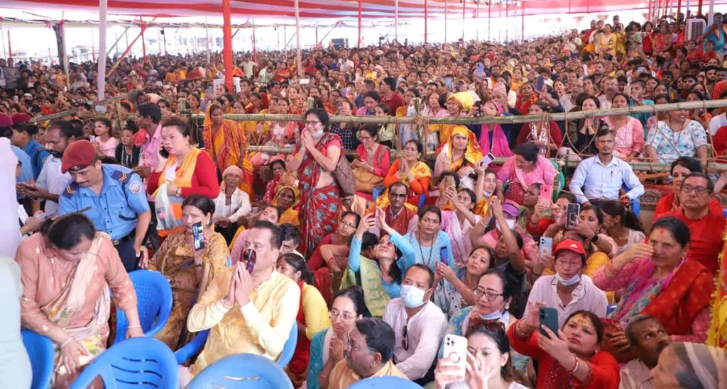 शाश्वतधाममा सुरु भएको ‘हनुमान कथा वाचन सुन्नका लागि भक्तजनको भिड