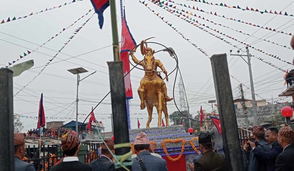 पुर्वराजा ज्ञानेन्द्र शाहद्वारा पृथ्वीनारायण शाहको शालिक अनावरण