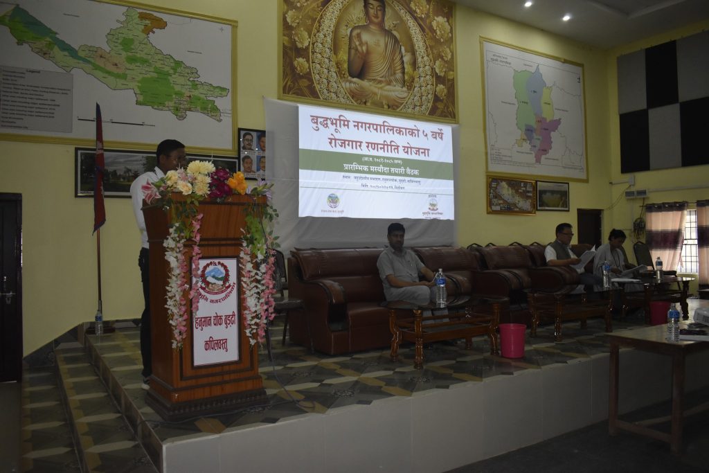 तौलिहवा (कपिलबस्तु), जेठ १८ गते । जिल्लाको बुद्धभुमि नगरपालिकाले पाँच बर्षे रोजगार रणनिति योजना बनाउन लागेको छ । रोजगार रणनितिक योजना निर्माण गर्न प्रारम्भिक मस्यौदा तयारी बैठक सम्पन्न गरिएको हो । नगरपालिकाभित्र रोजगारीको अवसर सिर्जना गरी बढ्दो बेरोजगारी र गरीबीलाई न्यूनिकरण गर्ने उद्देश्यले रोजगार रणनिति योजना बनाउन लागिएको छ ।