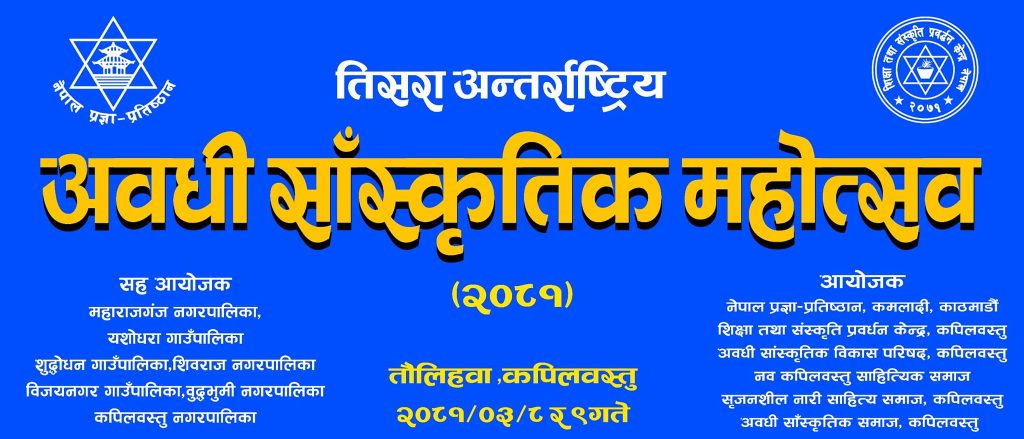 कपिलबस्तु, असार ८ गते । कपिलबस्तुको तौलिहवामा तिसरा अन्र्तराष्ट्रिय अवधी सांस्कृतिक महोत्सव हुने भएको छ । महोत्सवको उद्घाटन लुम्बिनी प्रदेशका उद्योग, पर्यटन तथा सहकारी मन्त्री खड्ग बस्नेतद्वारा गरिने छ । महोत्सव शनिबार र आईतबार गरी दुई दिन चल्ने आयोजक समितिले जानकारी दिइएको हो ।