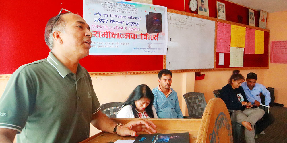 यस्तै पुस्तकालयका अध्यक्ष चेतकान्त भट्टराई, हाम्रो पूर्णिमा साहित्य प्रतिष्ठान कोहलपुरका अध्यक्ष कपिल अन्जान र पुस्तकालयका सचिव एकराज शर्मालगायतले पनि निबन्ध सङ्ग्रह बारे आआफ्नो भनाइ राख्नुभएको थियो ।