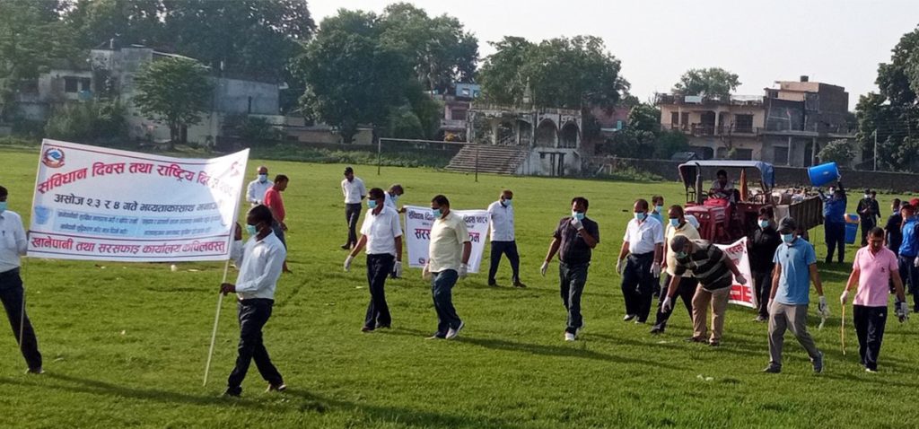 संविधान दिवस जिल्ला मूल समारोह समिति, स्वास्थ्य कार्यालय, खानेपानी तथा सरसफाइ सव डिभिजन कार्यालय, सुरक्षाकर्मी, नागरिक समाजको सहभागितामा खेल मैदानमा सरसफाइ अभियान चलाइएको हो।