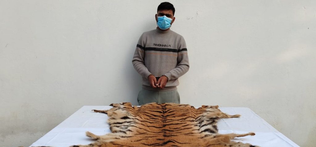 विशेष सूचनाको आधारमा करुणा रेष्टुरेन्ट एण्ड लजको काउन्टर अगाडी बाहिर बरण्डामा बुटवल उप महानगरपालिका वडा न .५ गोलपार्क बस्ने बर्ष अं. ४१ को बिष्णु प्रसाद भट्टराइ बाघको छाला सहित पक्राउ परेका हुन।