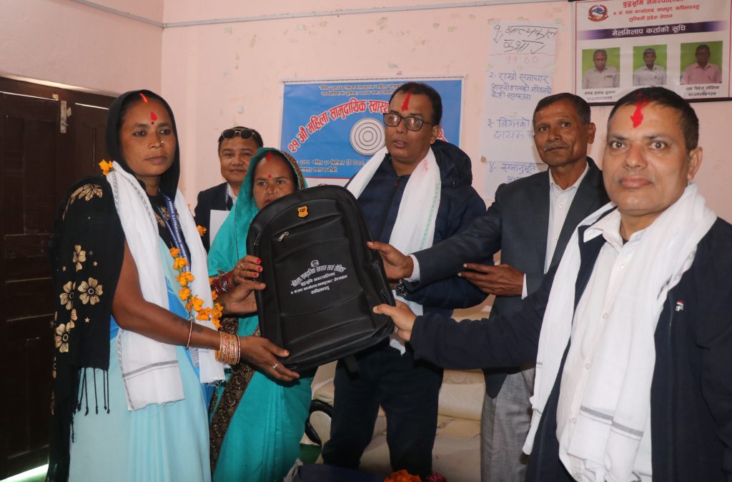 बुद्धभुमिमा महिला स्वास्थ्य स्वयंसेविकाहरुलाई प्रोत्साहित गर्न झोला