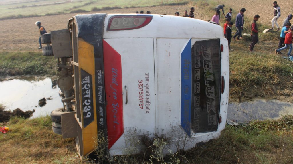 कपिलवस्तु शुद्धोधन गाँउपालिका ३ गुलरी स्थित तौलिहवा–भैरहवा सडक खण्डमा भैरहवादेखि तौलिहवा तर्फ आउदै गरेको लु २ ख २३१ नम्बरको बस र बिपरित दिशा तर्फ आउँदै गरेको बा १४ च ७४४८ नम्बरको कार र लु.३८ प ९१९९ नम्बरको मोटरसाइकल एक आपसमा ठोकिदा दुई जनाको मृत्यु र ११ जना घाइते भएको प्रहरी निरिक्षक माधव विश्वकर्माले बताउनुभयो ।