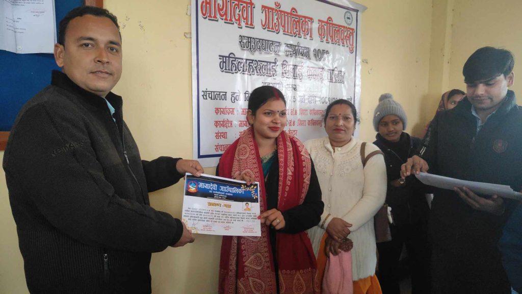 मायादेवी गाँउपालिकाको पिपरामा महिलाहरुलाई एक महिने सिलाई–कटाई तालिम