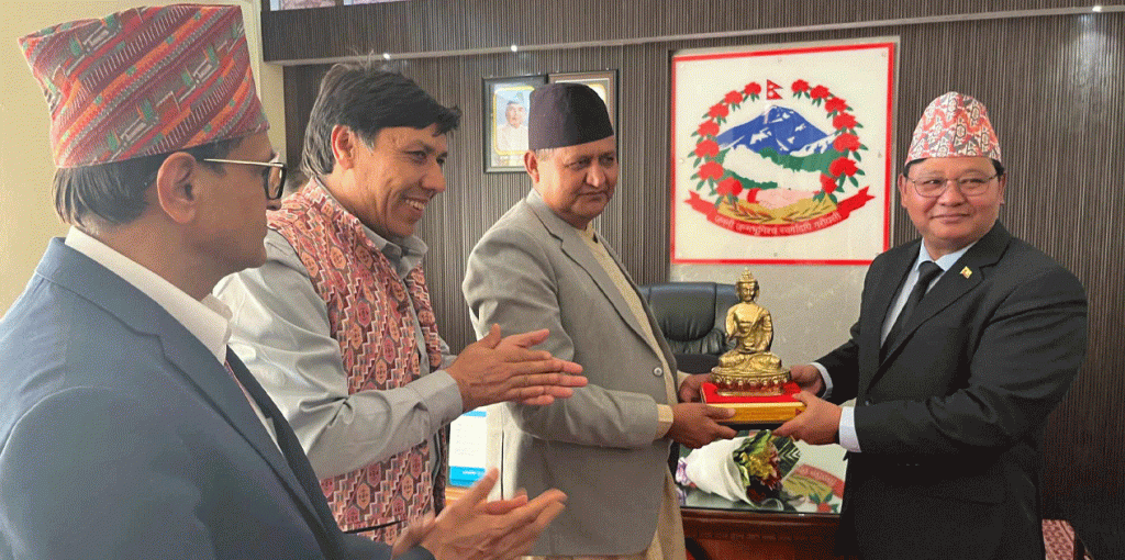 काठमाडौँ । नेपालका लागि म्यानमारका राजदूत उ म्यो म्यिन्ट माउङले बुधबार लुम्बिनी प्रदेशका मुख्यमन्त्री चेतनारायण आचार्यसँग भेट गरेका छन् ।