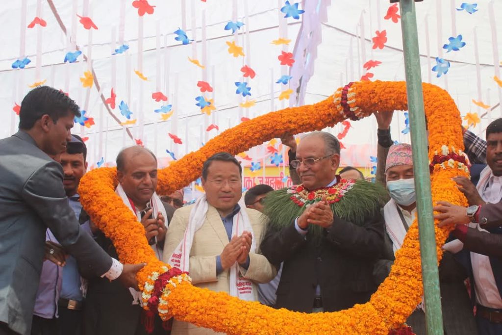 रुपन्देहीमा प्रचण्डलाई ७१ किलोको मालाले स्वागत