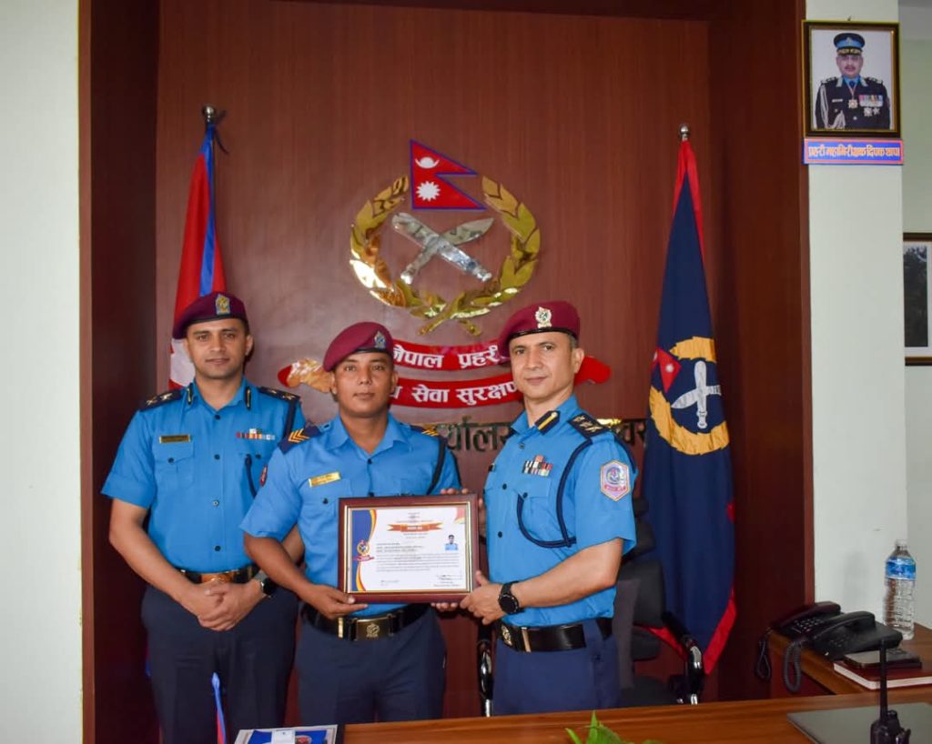 उत्कृष्ट कार्य गर्ने प्रहरी कर्मचारी प्रशंसा-पत्रद्वारा सम्मानित