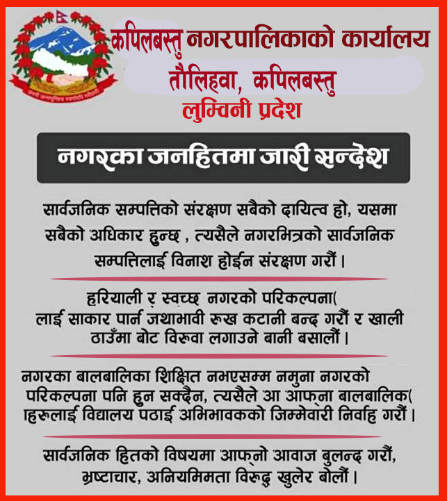 गत जेठ दुई गते कपिलवस्तु नगरपालिका वडा नम्बर ८, मैनिहवाकी १४ वर्षीया सुखना केवटको आँपको रुखले च्यापेर मृत्यु भएको थियो। मृत्यु भएको २७ दिनपछि मेयर सुदीप पौडेलले पीडित परिवारको घरमै पुगेर मृतक बालिकाकी आमा ज्ञानमति केवटलाई दुई लाखको चेक हस्तान्तरण गरे।