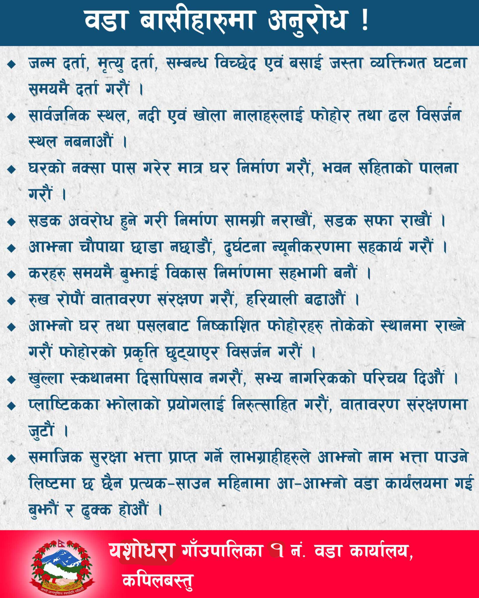 कार्यक्रमको अध्यक्षता सूर्य मती पासीले गर्नुभएको थियो भने गाउँपालिका अध्यक्ष शिव दयाल तिवारी प्रमुख अतिथि रहनुभएको थियो। कार्यक्रमका विशिष्ट अतिथि प्रमुख प्रशासकीय अधिकृत ऋषभ देव खनाल हुनुहुन्थ्यो।