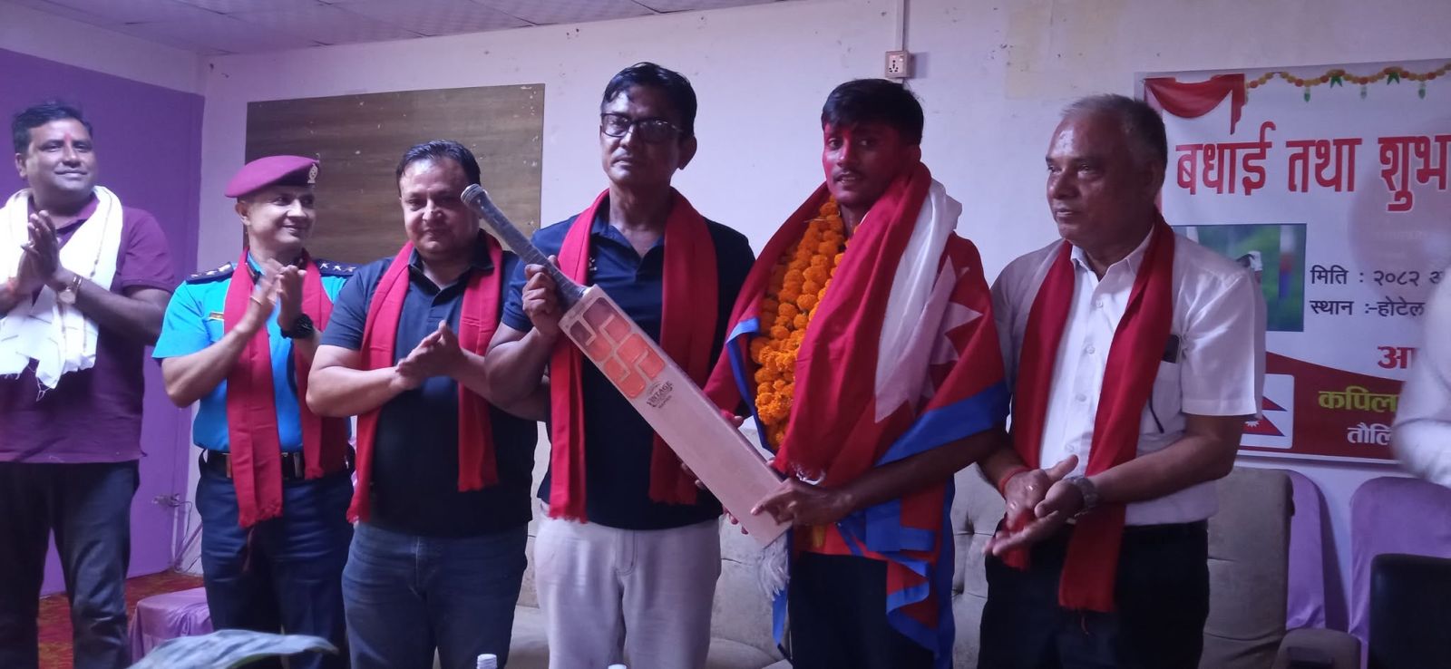 सोमबार कपिलवस्तु आएका उनलाई मंगलवार जिल्ला क्रिकेट संघको अगुवाइमा बाजागाजा सहित तौलिहवा बजारमा परिक्रममा गराई स्वागत र सम्मान गरिएको थियो। तौलिहवाको जमुहार देखि प्रशासन चोक, गौढी भिक्षु चोक महिता हुँदै होटेल तिलौराकोट सम्म र्याली सहित परिक्रममा गराइएको थियो ।