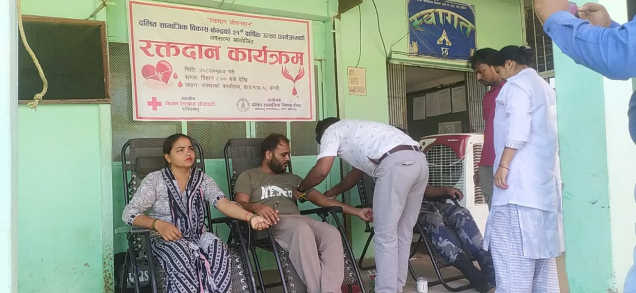 कपिलवस्तु । दलित सामाजिक विकास केन्द्र डंगरी, कपिलवस्तुको २१औँ वार्षिकोत्सवको अवसरमा रक्तदान कार्यक्रम सम्पन्न भएको छ।