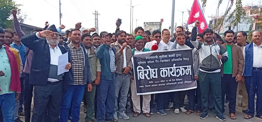 प्रधानमन्त्री सुशीला कार्कीले मुस्लिम समुदायलाई लक्षित गैर जिम्मेवार अभिब्यक्ति दिएको भन्दै कपिलवस्तुको तौलिहवामा मुस्लिम अगुवाहरुले प्रर्दशन गरेका छन ।