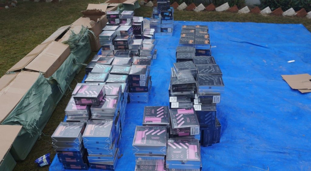 पश्चिम नवलपरासी, पुस २ गते । पश्चिम नवलपरासीको सीमावर्ती क्षेत्रबाट सशस्त्र प्रहरीले ४५ लाख बराबरको भेप (इलेक्ट्रिक चुरोट) बरामद गरेको छ । आज बिहान पालहीनन्दन गाउँपालिका –६ कबरस्थान नजिकै परालको कुन्योमा लुकाइराखेको अवस्थामा प्रहरीले भेप बरामद गरेको हो ।