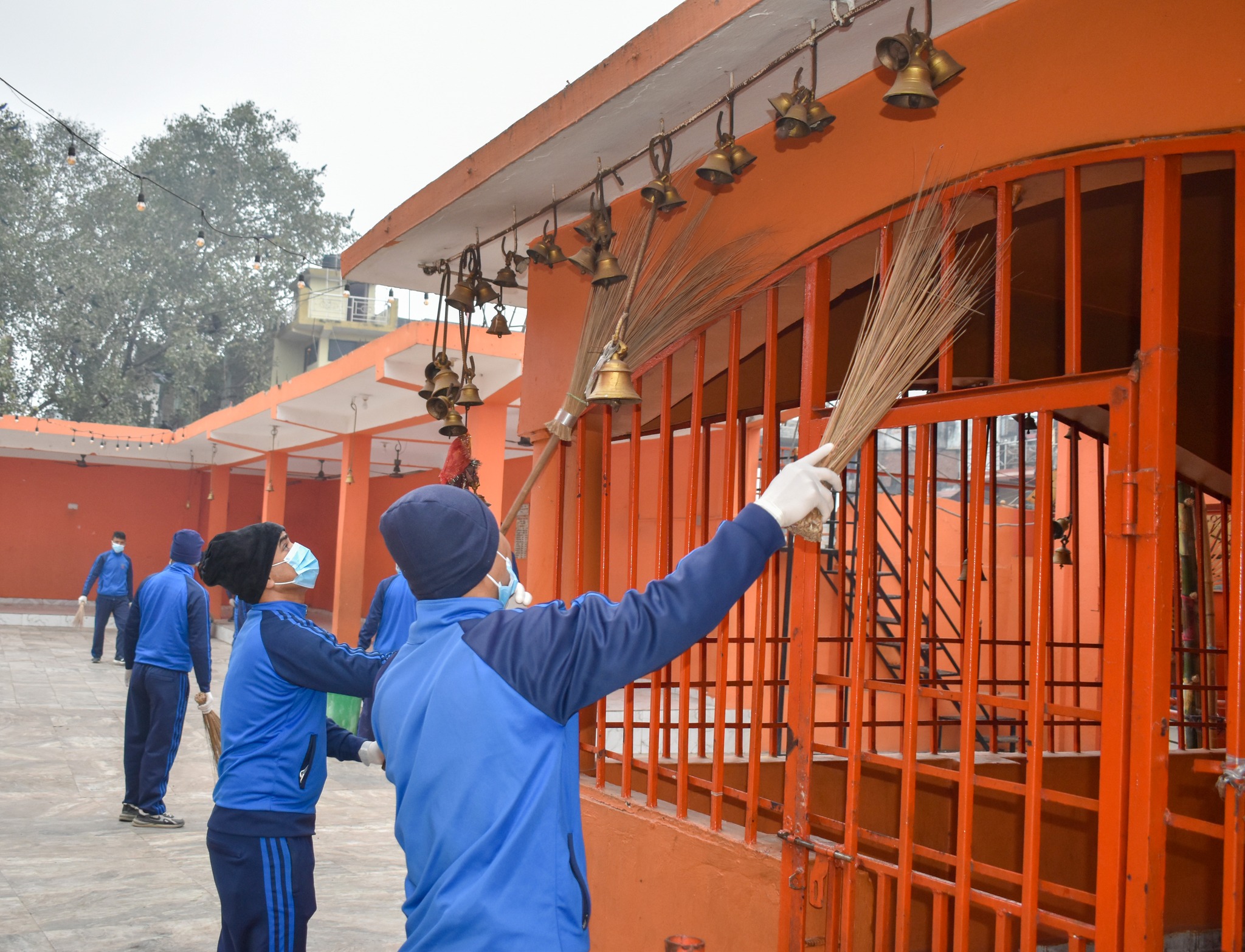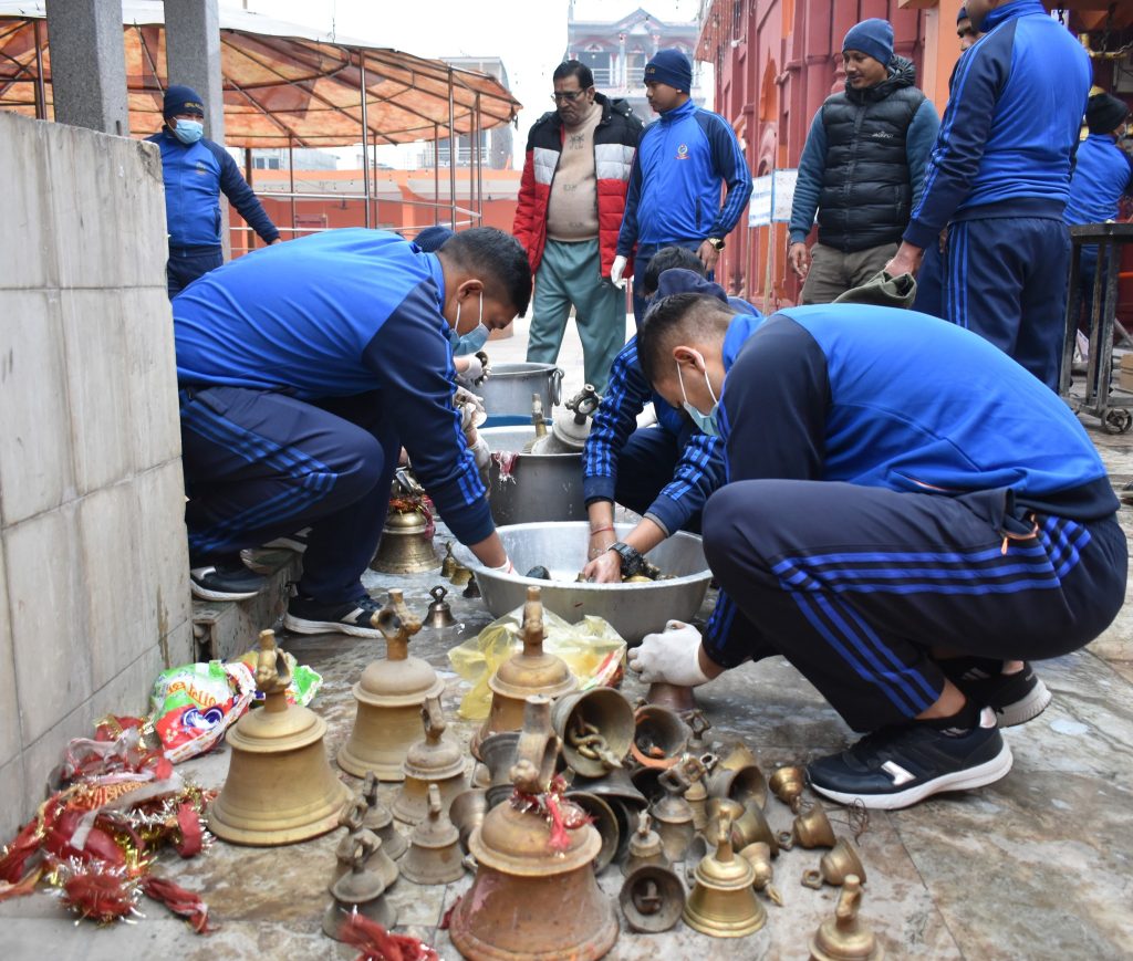 मन्दिरमा रहेको घण्टी तथा मन्दिर सरसफाई
