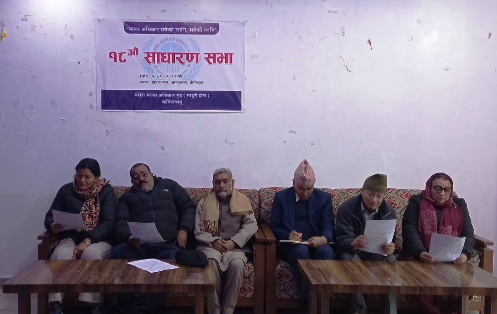 कपिलवस्तु, २२ गते । कपिलवस्तुको तौलिहवामा मधेस मानव अधिकार गृह माहुरी होमको १८ औ बार्षिक साधारण सभा संपन्न गरिएको छ ।