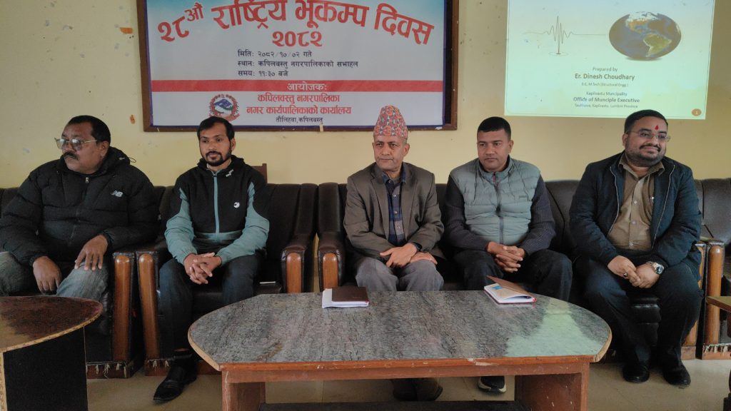 “सबै तहको सरकार, सबै नागरिकको तयारी—भूकम्प उत्थानशील नेपाल, अबको जिम्मेवारी” भन्ने नाराका साथ २८ औँ राष्ट्रिय भूकम्प दिवस कपिलवस्तु नगरपालिकामा सभाहलमा मनाइएको छ ।