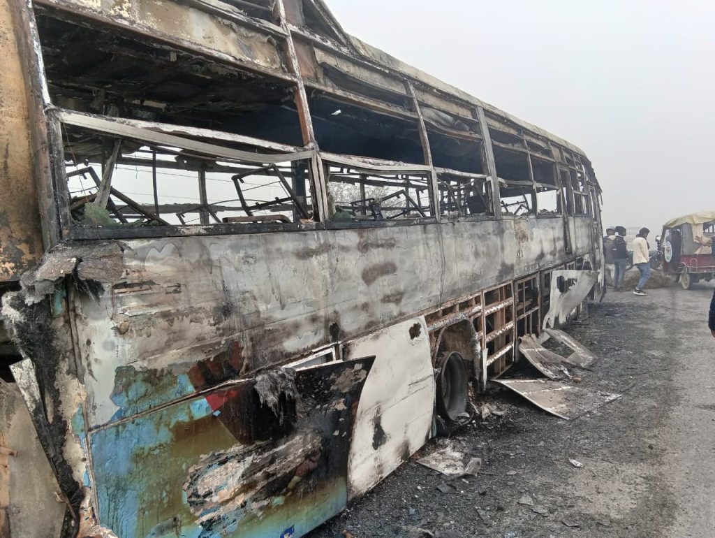गुडिरहेको अवस्थामा अचानक आगो लागेको बस सडक छेउमा रोकिएको थियो। बसको बायाँ चक्कामा अचानक आगलागी सुरु भएको थियो। स्थानीयवासी, प्रहरी र कपिलवस्तु नगरपालिकाबाट गएको दमकलले आगो निभाउन प्रयास गरे पनि बस आधा घण्टामै पूर्ण रूपमा जलेर नष्ट भएको इलाका प्रहरी कार्यालय पकडीले जनाएको छ।