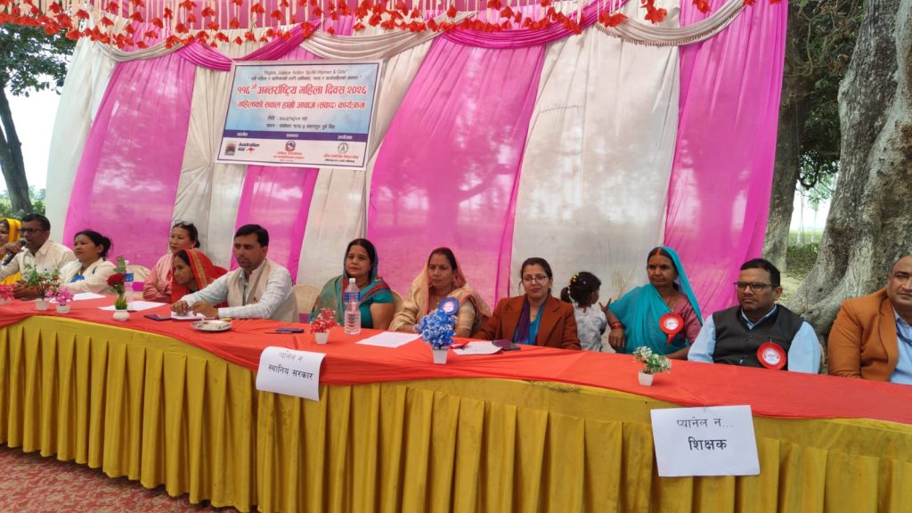 कपिलवस्तु । अन्र्तराष्ट्रिय महिला दिवसको अवसरमा कपिलवस्तुको यशोधरा गाँउपालिका–३ बसन्तपुर पूर्व डिहमा “सबै महिला र बालिकाका लागि अधिकार, न्याय र कार्यसहितको अवसर” भन्ने नारासहित ‘महिलाको सवाल हाम्रो आवाज (संवाद)’ कार्यक्रम सम्पन्न भएको छ ।